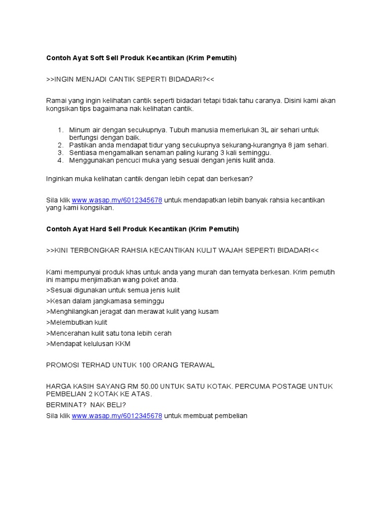 Panduan Ayat Marketing Soft Sell Dan Hard Sell Pdf